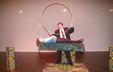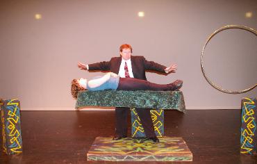The above pictures were taken during a final dress rehearsal of "An Evening of Magic & Grand Illusion" at Syracuse High School auditorium. Eric Wanner & assistants Brinley Nash & Blaine Wanner pictured.